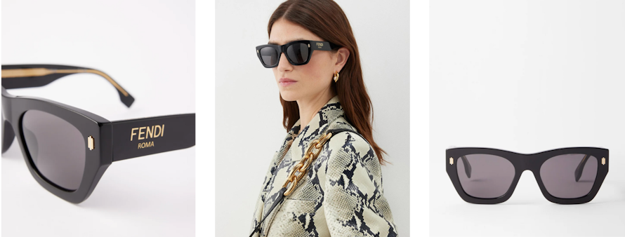 Siluetas Innovadoras: Los diseños de gafas de Fendi trascienden lo convencional, mostrando una inclinación por las formas vanguardistas y las siluetas innovadoras. Desde monturas extragrandes que destilan glamour hasta elegantes estilos de ojo de gato que evocan una sensación de encanto atemporal, el compromiso de Fendi con trascender los límites del diseño es palpable.